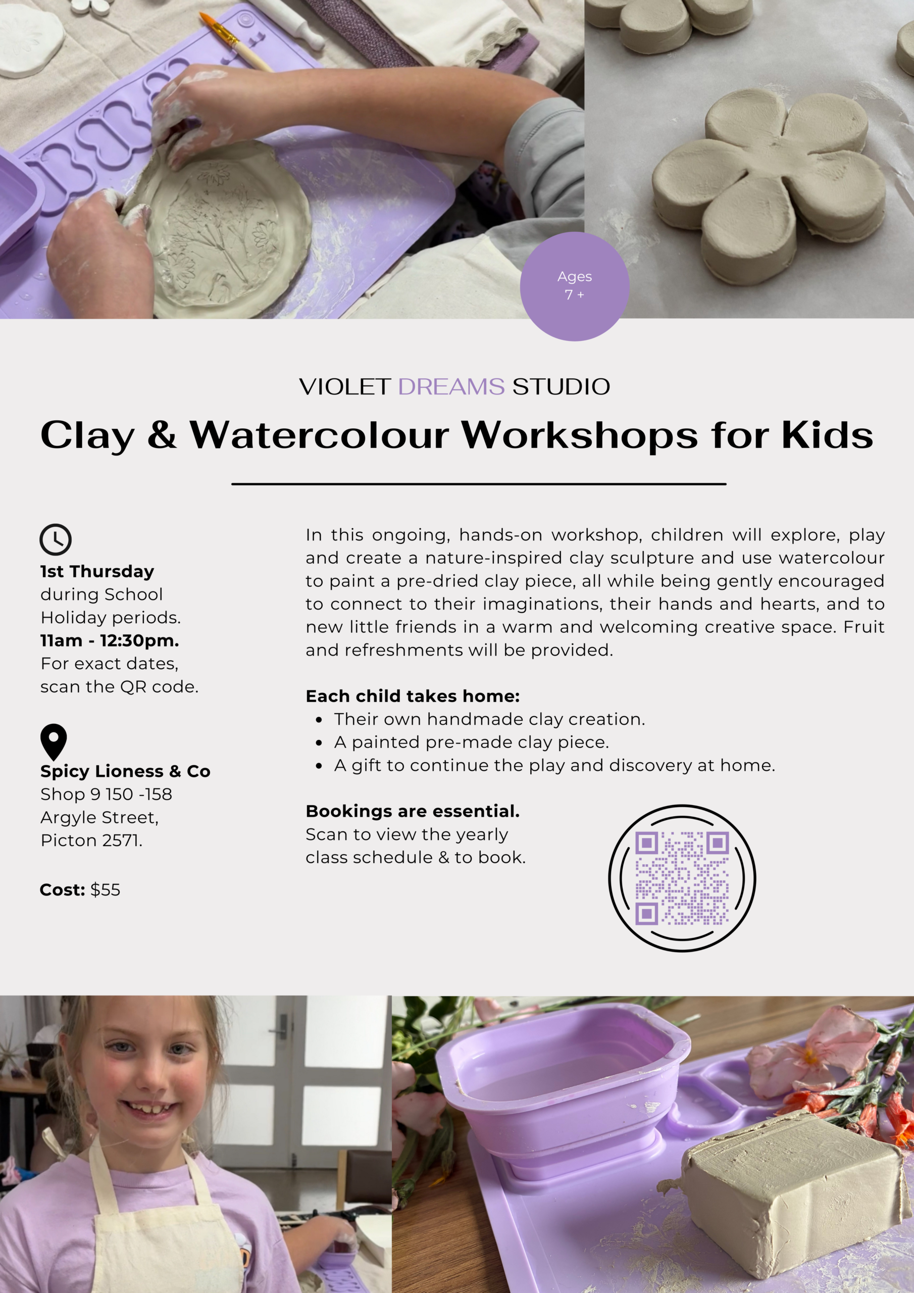 In this ongoing, hands on workshop, Children will explore, play and create a nature inspired clay sculpture. They will also use watercolour to paint a pre-dried clay piece, all while being gently encouraged to connect their imaginations, their hands and hearts. They will connect with new friends in a warm and welcoming creative space. Fruit and refreshments will be provided.